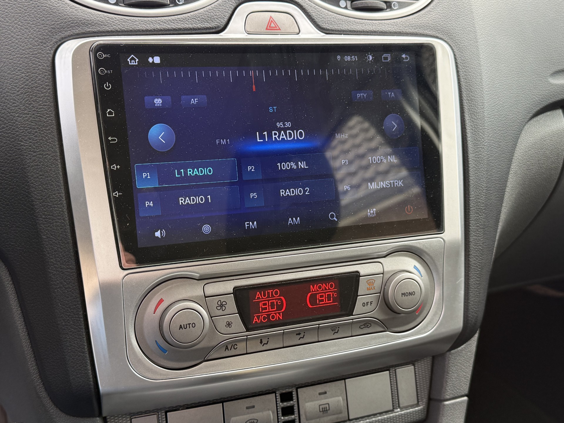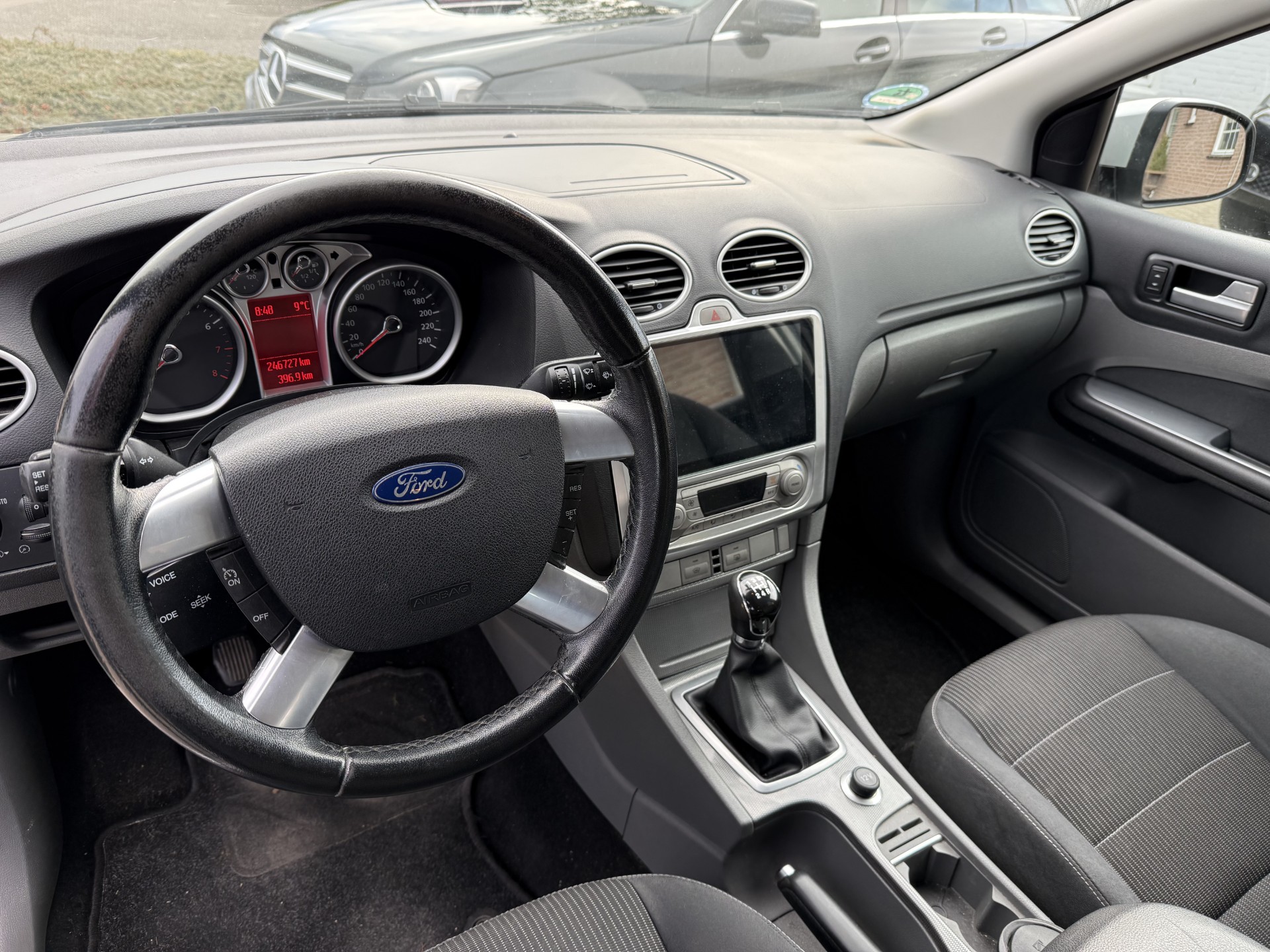 Met de knoppen op het stuur regelt u het audiosysteem en het navigatiesysteem, terwijl u uw blik op de weg gericht houdt. De auto is ook uitgevoerd met automatische airconditioning. De parkeersensoren waarschuwen wanneer u te krap inparkeert of dat ene paaltje niet hebt gezien. Er is ook cruise control aan boord, om met een constant tempo ontspannen en zuinig te rijden. U bent in deze Ford ook voorzien van automatisch dimmende binnenspiegel, lederen stuur, isofix-aansluiting, centrale deurvergrendeling met afstandsbediening, boordcomputer en lederen versnellingspook.